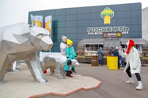 Международная выставка-форум «Россия» проводится по указу Президента Российской Федерации Владимира Путина с 4 ноября 2023 года по 12 апреля 2024 года на территории ВДНХ. Экспозиция «Роснефти» размещена в павильоне, построенном по авторскому дизайн-проекту. Цифровое оборудование павильона, экспонаты, работающие в интерактивном режиме, рассказывают посетителям об истории нефтяной отрасли и Компании, ее перспективах, научных разработках и социальных проектах.