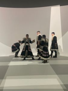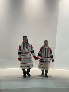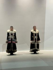 Программа второго дня выставки продолжилась демонстрацией национальных костюмов. Суровый климат Крайнего Севера требует надежной одежды, способной защитить зимой от лютого мороза, а летом – от гнуса. Ведущий подробно рассказал об особенностях национальных костюмов пяти этносов Таймыра: наганасан, ненцев, долган, эвенков и энцев. За долгие века жизни в суровых северных условиях северные народы научились изготавливать уникальную одежду, наилучшим образом сохраняющую тепло и защищающую от ветра, снега, дождя и мороза.
