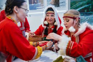 В павильоне также проходят выступления артистов с музыкальными номерами в жанре устного народного творчества - «Однажды долгой зимней ночью» семейной династии манси. Кроме того, гости могут принять участие в мастер-классах по созданию народной игрушки, викторинах о самобытных традициях КМНС и выиграть призы.