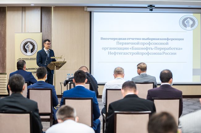 В профсоюзной организации «Башнефть-Переработка» прошла внеочередная отчетно – выборная конференция ее первичной профсоюзной организации. В ней участвовали профактив и руководство нефтеперерабывающих предприятий, Председатель Республиканской организации Башкортостана НГСП России и представитель МПО «Роснефть» в Республике Башкортостан Валерий Сафиханов, Председатель МПО «Роснефть» Евгений Черепанов.