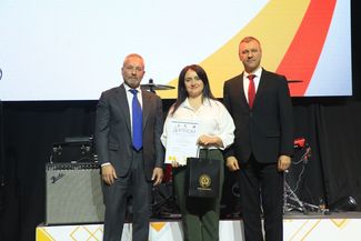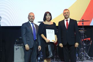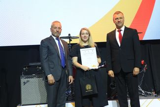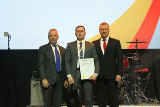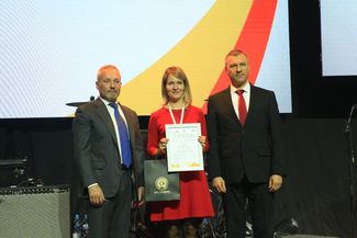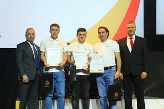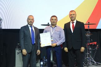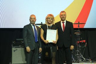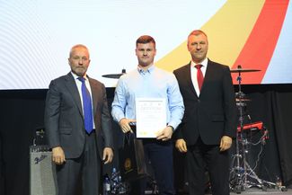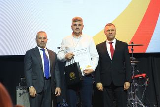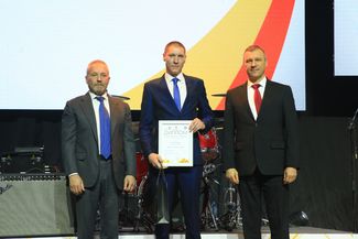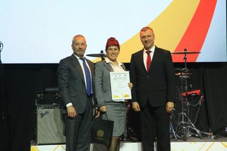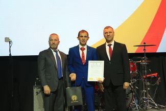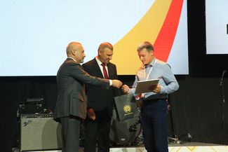 Лучших из лучших уполномоченных по охране труда профсоюза, а также победителей инициированной профсоюзом номинации «Безопасный труд» в корпоративном конкурсе «Лучший по профессии», на торжественном закрытии объединённого Смотра-конкурса награждали лидер профсоюза «Роснефти» Сергей Караганов и и.о.Вице-президента Компании по промышленной безопасности и охране труда Вячеслав Куренков.