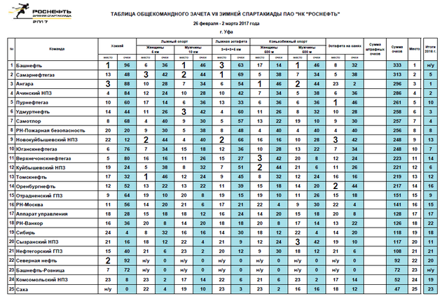 Победительницей VII Зимней Спартакиады стала сборная команда «Башнефть», следом, с небольшим отрывом - сборная «Самаранефтегаза», бронзовый призер – команда «Ангара» (в прошлом году она была победительницей Спартакиады).