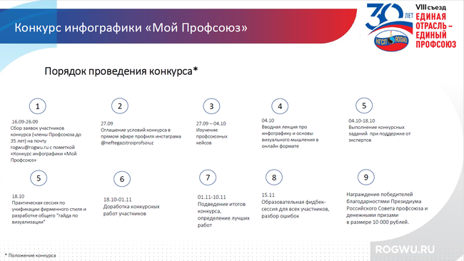 Отправляйте скорее заявку до 26 сентября на почту rogwu@rogwu.ru с пометкой «Конкурс инфографики «Мой Профсоюз».