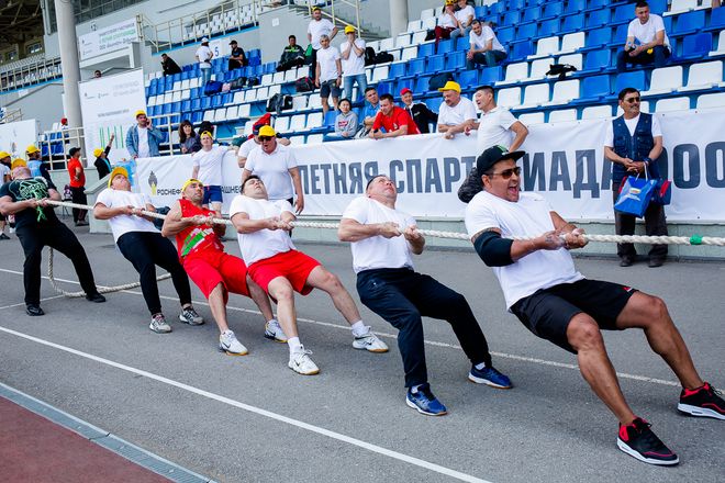 Самая большая интрига крылась в соревнованиях по перетягиванию каната. Команда Арланской группы месторождений в очной схватке за 5-6 места вместе с командой Аппарата управления набрали по 78 очков. Победитель этой схватки набирал 84 очка и ждал, какое место займет Чекмагушевская группа месторождений, которая в полуфинале имела все шансы стать первой в общем зачете.