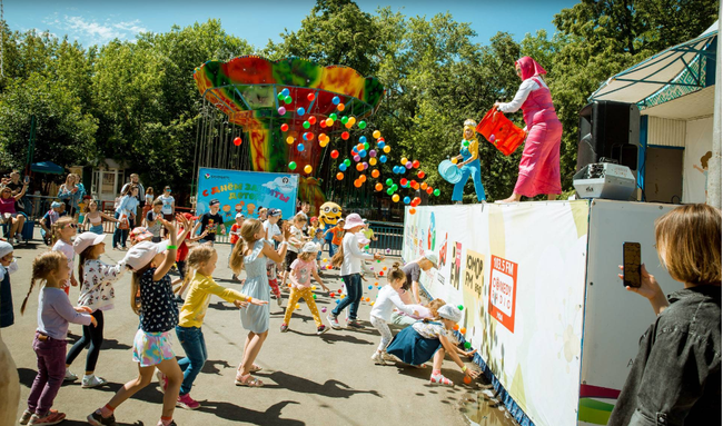 Программа праздника включала интересные игры, конкурсы, викторины, в которых с радостью участвовали и дети, и их родители. Ребята состязались в смекалке и ловкости. Атмосфера соревнования, дух соперничества вызывали бурный восторг и восхищение детворы. А с каким удовольствием ребята доверялись художникам-визажистам, которые создавали выразительные и милые рисунки на их лицах. Вот уж где царил фейерверк радости, веселья и воплощения детских фантазий! Необыкновенно рады были ребята и возможности прокатиться на любом из аттракционов парка, ну и конечно же получить десерт — мороженое.