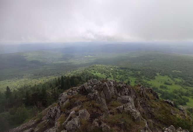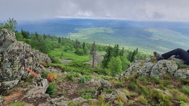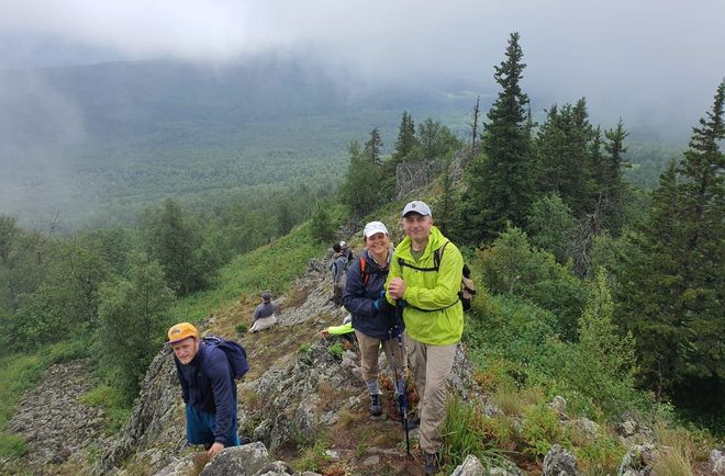 …Маршрут подъема шел по грунтовой дороге со смешанным лесом и цветущим разнотравьем. На высоте 900 метров пришлось преодолеть участок с каменной россыпью – курумом. А на вершине горы участникам похода открылся потрясающий вид скальных хребтов заповедника.