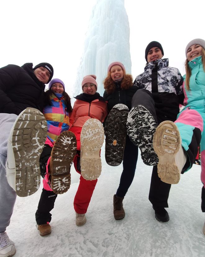 Следующая достопримечательность парка - ледяной фонтан. Замерзая, он образует причудливую сосульку из голубого льда высотой до 16 метров. Размер сосульки зависит от температуры и направления ветра, поэтому каждую зиму он отличается от предыдущих. Фонтан полуприродный – полуискусственный, он возник в 1976 году, когда геологи пробурили здесь разведочную скважину. Полезных ископаемых не нашли, зато попали в артезианский бассейн и из скважины хлынула струя воды.