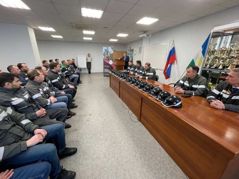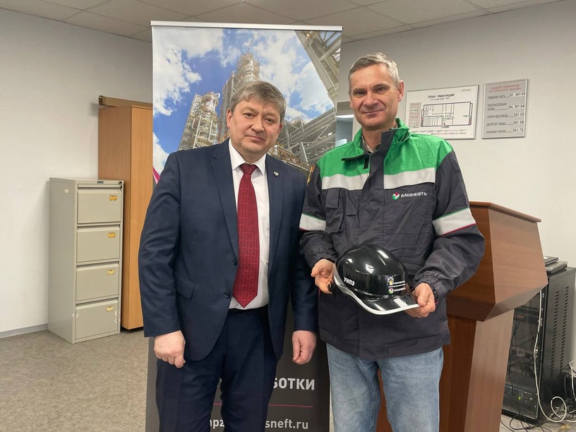 На память о плодотворной работе и качественном завершении ремонта им были вручены именные каски от Филиала и ППО «Башнефть-Переработка»!