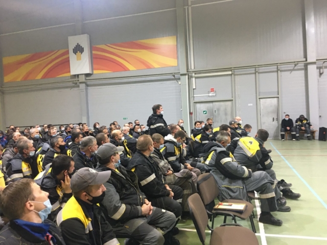 Председатель профсоюзной организации ООО «Харампурнефтегаз» Ирек Насыров встретился с работниками Укрупненного нефтегазового промысла.