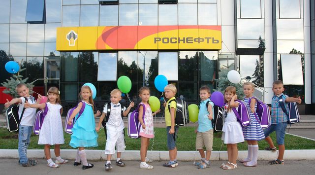 В канун начала нового учебного года 109 ребят-первоклассников, детей сотрудников Куйбышевского НПЗ, получили в подарок первый школьный портфель. Администрация и профсоюзный комитет завода подарили ребятам и необыкновенный праздник по мотивам мультфильма «Маша и Медведь».