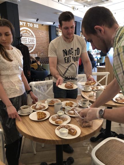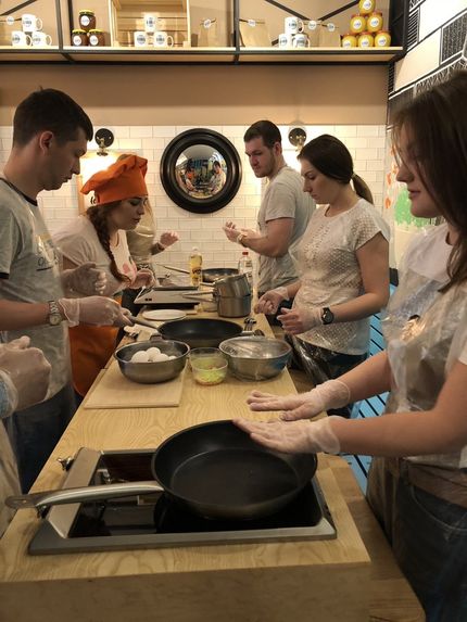 Ранним субботним утром, облачившись в фартуки и перчатки, 12 смельчаков начали постигать премудрости приготовления блюд. Картофельные вафли с курицей, яйцами пашот и голландским соусом, а также сырники с цитрусовой сметаной и безе были особенно хороши и вкусны, ведь самым главным ингредиентом во всех кулинарных творениях была любовь!