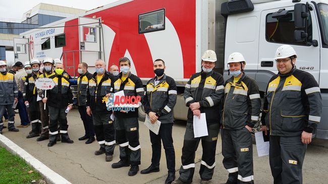 В живой очереди перед мобильным пунктом – офисные сотрудники и рабочие, ненадолго оставившие свои посты ради благородного дела. Каждый год в сдаче крови принимают участие более 120 заводчан.