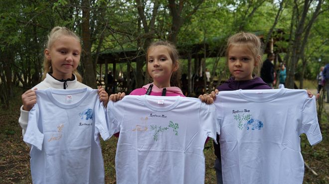 – Мы сделали такие крутые футболки! – хвалится своей работой Арина Крючкова. – Мне очень понравилось рисовать по ткани.