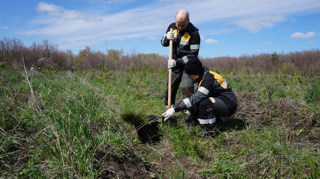 Здесь будет лес! Волонтёры Куйбышевского НПЗ откликнулись на призыв Волжского лесничества посодействовать в восстановлении лесов Самарской области: на границе Красноярского района заводчане высадили более тысячи саженцев сосны.