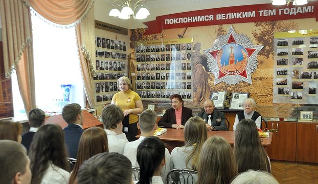 Ребята из первых уст услышали рассказы о Великой Отечественной войне тех, кто был свидетелем героических страниц истории нашей Родины. Председатель Городского Совета ветеранов Виктор Филиппович Семенов, работавший на Новокуйбышевском НПЗ начальником Газокаталитического производства, узница фашистского концлагеря Валентина Михайловна Соловьева и труженица тыла Анна Георгиевна Бышкина, работавшие на заводе старшими операторами, рассказали о своем жизненном пути, о целом поколении настоящих героев, с которыми они трудились плечом к плечу.