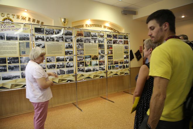 Перед началом конференции в зале работала передвижная выставка «70 лет надёжной защиты», посвящённая юбилею профсоюзной организации, методист Зала трудовой славы Наталья Швец рассказала делегатам об истории и развитии заводского профсоюзного движения.