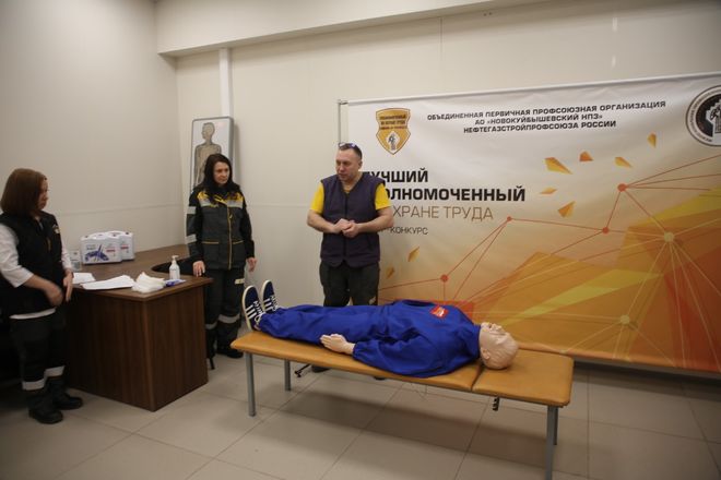 Медицинский блок подразумевал работу с манекеном: необходимо было проверить состояние «пострадавшего» и провести реанимационные действия. За правильностью выполнения вместе с членами жюри следил медик заводского здравпункта.