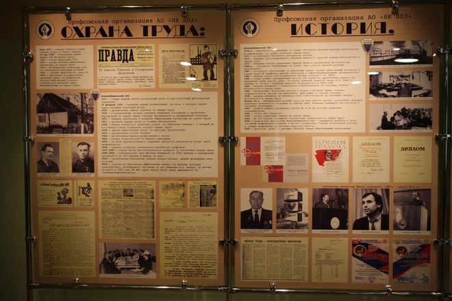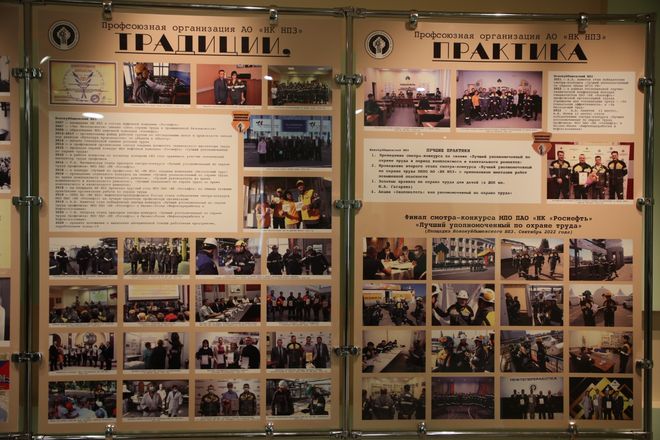 Специально для гостей и участников была подготовлена тематическая выставка, посвящённая истории становления института охраны труда на Новокуйбышевском НПЗ. С помощью методиста Зала трудовой славы Натальи Швец участники познакомились с основными событиями и фактами - от первых пунктов Коллективного договора (1952 год) - до Смотров-конкурсов «Лучший уполномоченный по охране труда МПО ПАО «НК «Роснефть».
