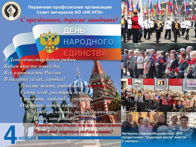 Профсоюзная организация Новокуйбышевского НПЗ подвела итоги творческого конкурса «В единстве наша сила», объявленного в канун Дня народного единства.