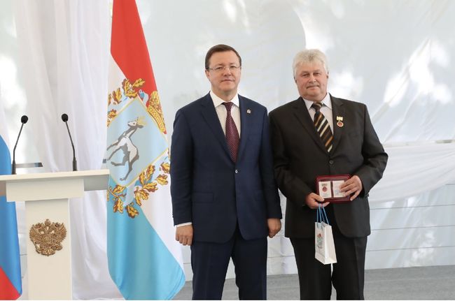 Старший оператор установки УКФГ Новокуйбышевского НПЗ Александр Болонин - Заслуженный работник нефтяной и газовой промышленности РФ. Удостоверение о присвоении высокого звания ему на торжественном приёме вручил Губернатор Самарской области Дмитрий Азаров.