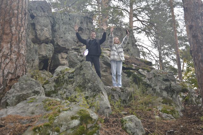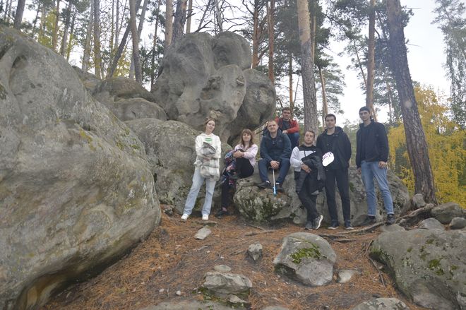 Следующим пунктом экомаршрута стали Рачейские горы или, как их называют, «Рачейские Альпы». Лишь немногим уступают они Жигулевским горам Самарской Луки. Поражает и окружающий ландшафт: сосновый лес на горных скалах с большими каменными россыпями. За свои неповторимые очертания многие валуны получили имена: Мыслитель, Сфинкс, Инопланетянин и другие. Ребята быстро включилась в процесс, назвав безымянный валун Ящерицей.