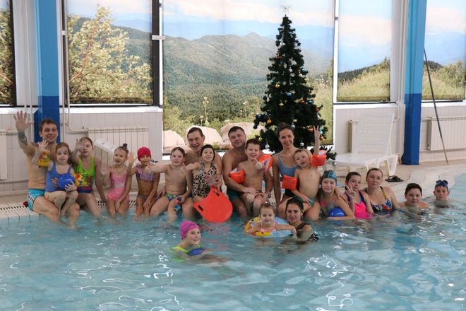 А больше всех участников собрали любимые «Елки на воде» - рецепт новогоднего настроения, главные ингредиенты которого веселье, задор и возможность активно провести выходной день всей семьей. Ведь в бассейне можно было не только плавать, но и прыгать, танцевать и даже водить хороводы со Снеговиком, Дедом Морозом и Снегурочкой.