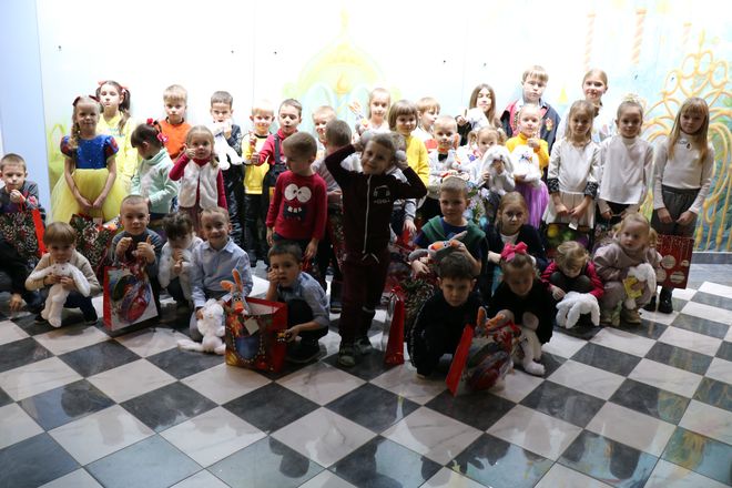 Всех малышей в конце спектакля ждал еще один приятный сюрприз от заводской профсоюзной организации - новогодние подарки со сладостями и сюрпризами.