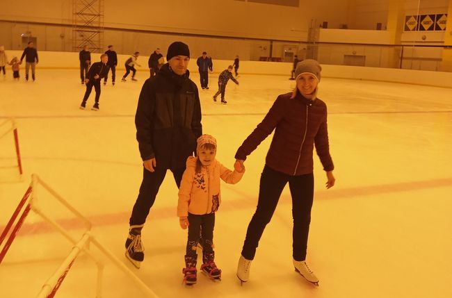 – Сегодня мы здесь второй раз, – рассказывает Юлия Рожнова. – Наша дочь пришла в восторг, когда впервые встала на коньки. Ради нее, в первую очередь, мы пришли еще раз в Ледовый дворец. Нам с мужем нравится кататься на искусственном льду. Раньше посещали только открытый каток, но здесь ощущения совсем другие, как в кино!