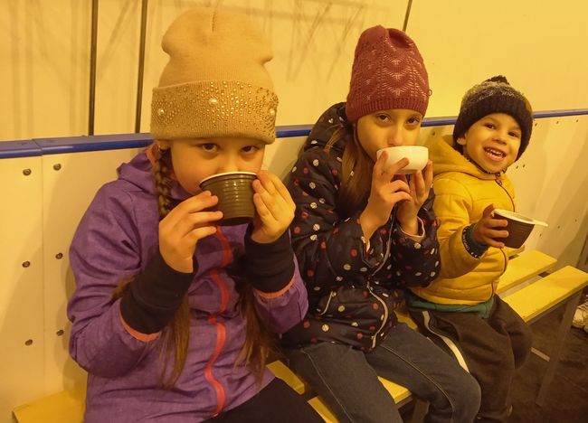 По мнению заводчан выходной на ледовой арене удался на славу. Пришли покататься семьями даже с малышами. Четырехлетний Костя Фоменко не только учился держать равновесие, но был счастлив, что не отстает на коньках от своих старших сестер. И нет ничего вкуснее, чем горячий чай из термоса в минуты отдыха!
