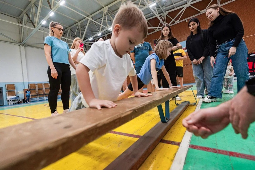 Отжимание от скамейки (мама): Мамы и дети продемонстрировали свою физическую подготовку, поднимая собственный вес.