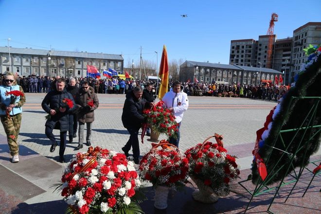 А в полдень на площади Воинской Славы прошла торжественная церемония с участием нефтяников, руководителей городских предприятий и ветеранов. Собравшиеся почтили минутой молчания всех тех, кто сражался в годы Великой Отечественной войны, возложили цветы к Вечному огню.