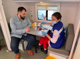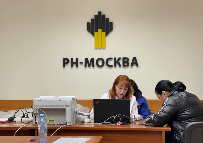 В офисе АО «РН-Москва» прошла очередная волонтерская акция для желающих стать донорами крови. Заполнив анкету и предъявив паспорт, работники направлялись в специальный мобильный комплекс.