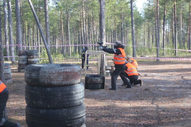 Судейская команда подготовила игровую площадку в городском парке «Юбилейный». В каждой команде было по пять человек. По правилам игры «убивать» всех противников необязательно, нужно лишь обозначить удар, прикоснувшись к щиту на противоположной стороне поля. Пейнтбольный маркер - довольно мощное устройство. Ружье снаряжается с помощью фидера — емкости для шаров. Оттуда шар с краской поступает в сам маркер, после чего пневматика посылает «пулю» со скоростью 90 м/сек !