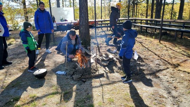 Организаторы подготовили много интересных конкурсов, и первый из них – развести костер, имея в коробке минимум спичек, не использовать для розжига бумагу и поднять огонь на высоту закреплённой между палок верёвки. Быстрее всех с этим заданием справилась команда «ИзДомаВон».
