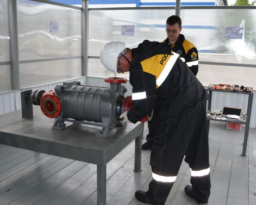 В практической части конкурса требовалось продемонстрировать свои профессиональные навыки в установке рабочего разбега ротора насоса ЦНС 60-190.
