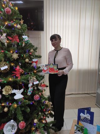 Поздравительные открытки выставлены возле праздничной Новогодней елки в фойе административного здания и все работники предприятия теперь могут ими любоваться.