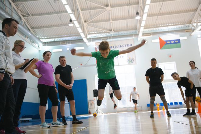 Затем настала очередь родителей поддерживать своих детей и гордиться ими: ребятам нужно было сделать максимально возможное количество подъемов тела из положения лежа в течение 1 минуты. Они очень старались не подвести свою семью и выложились на все 100! По результатам этой совместной дисциплины максимальное количество баллов набрала команда семьи Забродиных «Сапсан».