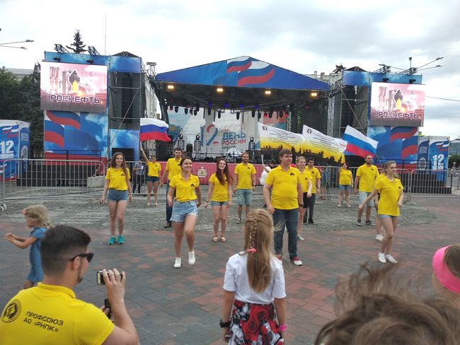 Участники праздника с помощью профсоюзной организации РНПК подготовили поздравительный танец-флешмоб «Вперед, Россия!» для жителей и гостей города.
