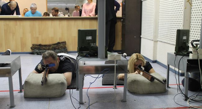 В соревнованиях по пулевой стрельбе из малокалиберной винтовки участвовали 7 команд, каждая из которых состояла из 4 человек. Поддержать спортсменов пришли их семьи, друзья и коллеги.