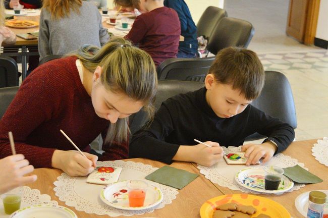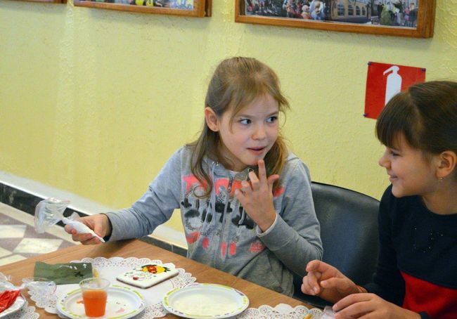 Приглашенный мастер рассказал ребятам о старинных традициях росписи пряников для новогодней рождественской елки. Специально испеченные для этого мастер-класса профессиональным кондитером ароматные пряники покрывались белой глазурью, поверх которой ребята рисовали красочные новогодние сюжеты, декорировали различными украшениями. Роспись первого пряника проходила с рекомендациями и советами профессионального мастера, а роспись второго – маленькой елочки - стала предметом безудержной фантазии и креатива ребят.