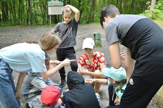 Главный специалист профкома Татьяна Ступина провела ребят по старинным родникам Кумысной поляны, рассказала связанные с ними сказки и легенды. Несмотря на большое расстояние, которое прошли ребята, им это так понравилось, что они упрашивали пройти еще до какого-нибудь родника и послушать его легенду...