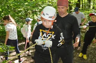 Но надо было остановиться на привал. Здесь детей ждали веревочный городок и туристический лабиринт. И с этими трудностями ребята справились на отлично.