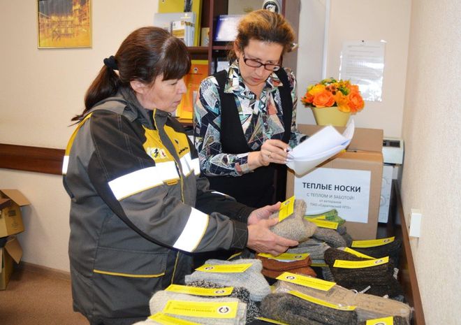 Совет ветеранов Саратовского НПЗ под руководством председателя Ольги Стромец провел акцию «С теплом и заботой!», участники которой связали теплые домашние носки для заводчан, исполняющих свой воинский долг.