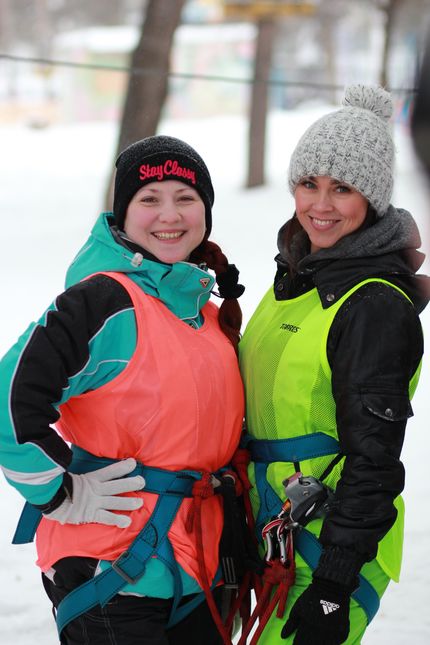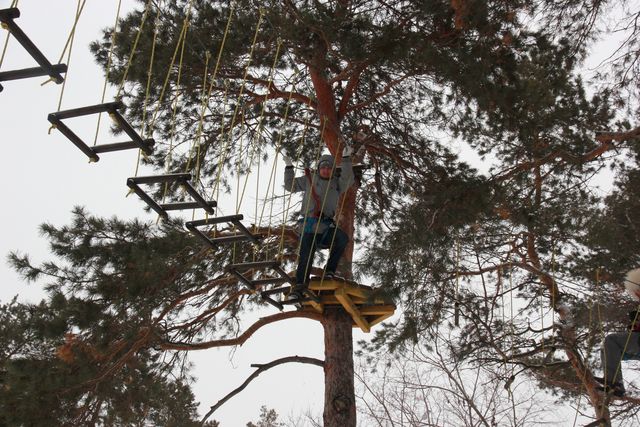 Девушки отправились на трассу "оранжевого" класса, а юноши - на «зеленую» - трассу профессионалов. Два капитана, лаборанты Екатерина Максимова и Лариса Гильманова, смело зашагали по веревочным кольцам. Они впервые проходили это испытание, их страх боролся с желанием показать пример смелости и бесстрашия мужским командам.