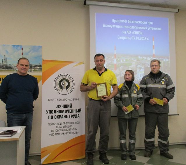 Профсоюзная организация Сызранского НПЗ подвела итоги и наградила лучших уполномоченных в области охраны труда по итогам работы в III квартале 2018 года.