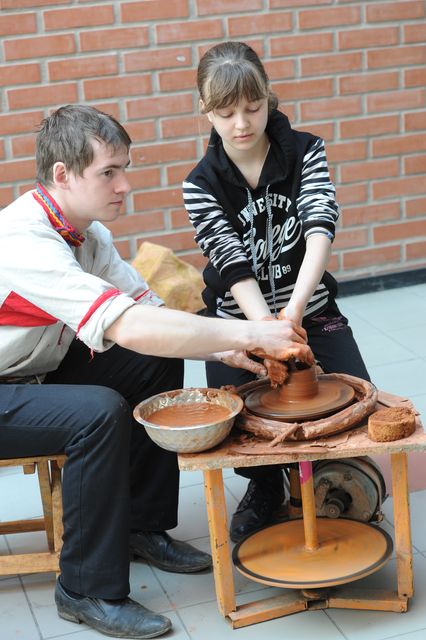 Не меньше желающих оказалось у гончара Ивана Учаева: глина оживала в руках ребят. Сделать своими руками кувшин, чашку или вазу смог каждый желающий.