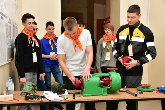 В этот день каждый из ребят смог выбрать одну из 7 профессий: оператор технологических установок, машинист технологических насосов или компрессорных установок, слесарь, электромонтер, лаборант химанализа, лаборант-эколог.