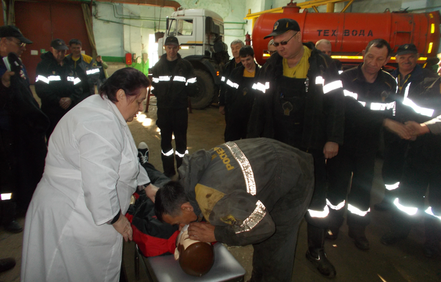 Специалисты отдела охраны труда и медицинские работники продемонстрировали приемы оказания первой помощи, а у работников предприятия была возможность отработать их на специальном тренажере «Гоша», непосредственно на рабочем месте.