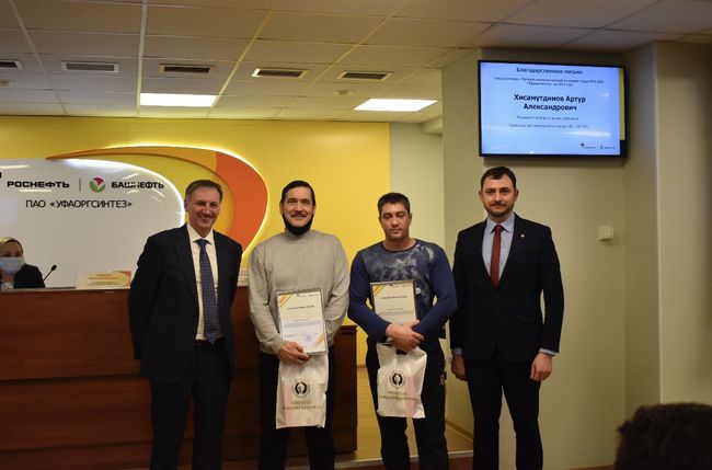 В завершении собрания, руководители завода отметили работу уполномоченных по охране труда: Лилии Ершовой (производство фенола и ацетона), Ришата Габдрахимову (производство синтетического этилового спирта) и Артура Хисамутдинова (производство фенола и ацетона). За активную жизненную позицию, качественные предложения по улучшению условий охраны труда, участие в работе Комиссий и Комитетов, отличные знания и высокие результаты работы они удостоены Благодарственных писем.