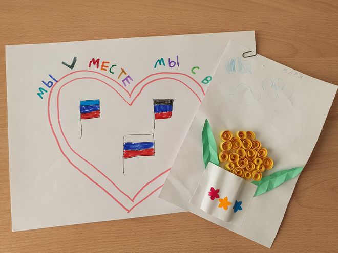 Ребята нарисовали добрые и трогательные рисунки с пожеланиями: «Скорее возвращайся домой!», «Мы тебя ждем!», «Мы верим в тебя!», чтобы поддержать наших военнослужащих, написали письма, сделали своими руками открытки. Все работы будут направлены в места проведения СВО.